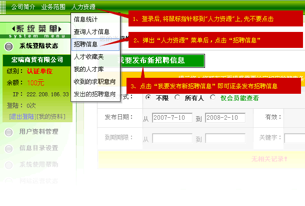 · 企業(yè)怎樣發(fā)布網(wǎng)上招聘信息,是否限制招聘信息數(shù)量? 2007年11月3日