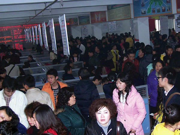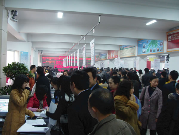 眉州人才市場一直堅(jiān)持每周星期五定期舉辦現(xiàn)場招聘會,2009年2月6日(星期五)春節(jié)后的第一場招聘會火爆開場,1200平方米的招聘大廳被擠得水泄不通。招聘會共有103家用人單位進(jìn)場招聘,提供崗位1800余個。來自市內(nèi)外的3000余名求職者進(jìn)場應(yīng)聘。此場招聘會參會的大中專畢業(yè)生占比例較大,技工類、服務(wù)類、醫(yī)療衛(wèi)生類、營銷類崗位需求量較大。