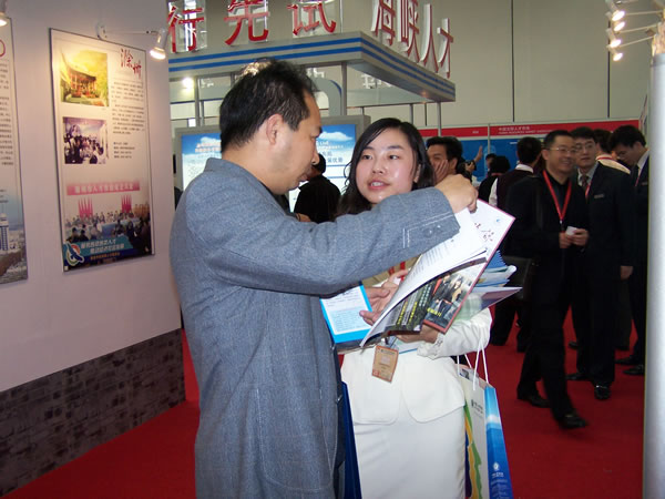 由中國(guó)人才交流協(xié)會(huì)、上海市人事局和浦東新區(qū)人民政府主辦的2007中國(guó)人才服務(wù)業(yè)博覽會(huì)于2007年11月15-16日在上海浦東展覽館舉行,中共中央政治局委員、上海市委書記俞正聲出席了開幕儀式并宣布開幕,中組部副部長(zhǎng)、人事部部長(zhǎng)尹蔚民,上海市委副書記、市長(zhǎng)韓正到會(huì)致詞。眉州人才市場(chǎng)由分管領(lǐng)導(dǎo)親自帶隊(duì)參會(huì),與多家國(guó)家級(jí)、省級(jí)人才市場(chǎng)親切交流,并達(dá)成一定的網(wǎng)上交流等合作意向。